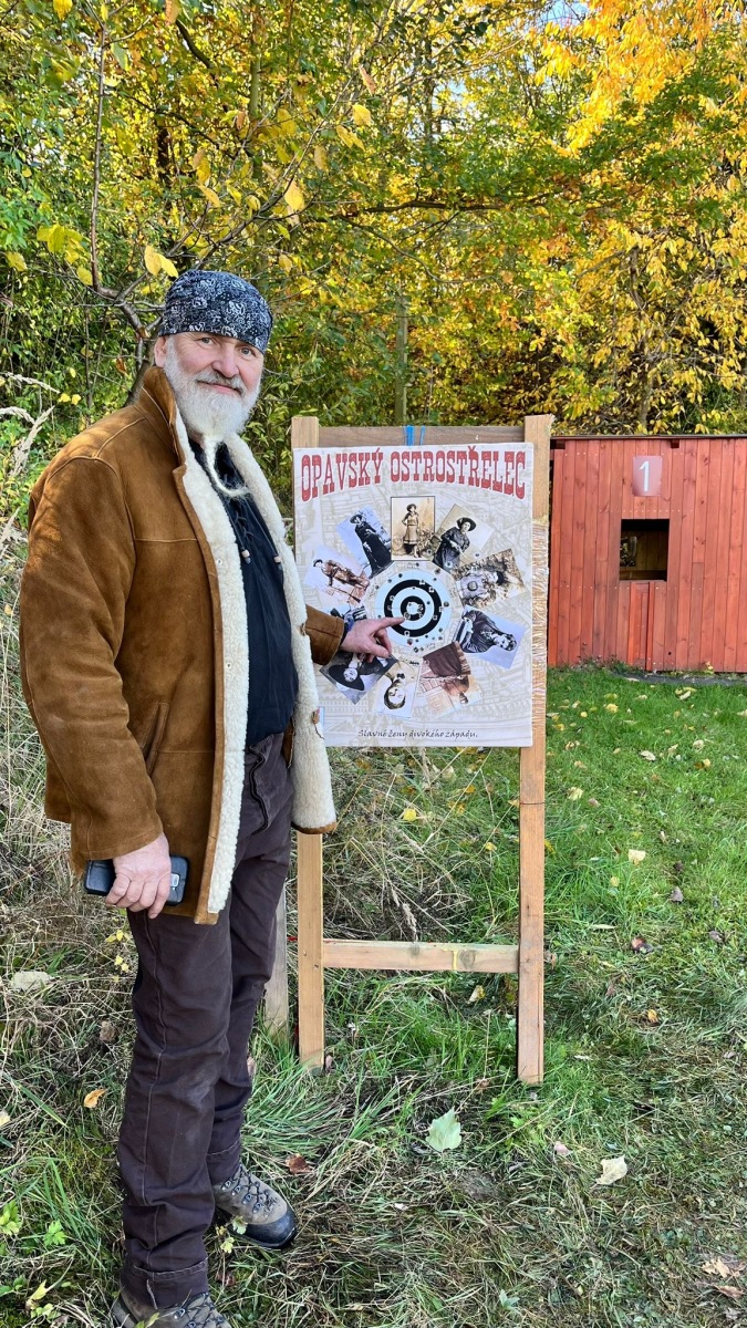 Na tomto místě chci srdečně poděkovat malíři, váženému panu Danovi Růžičkovi, se kterým jsem v kontaktu a který se zhostil úkolu – vytvořením westernového obrazu, tematicky zaměřeného pro náš závod. Tento byl použit nejen jako cena pro nejlepšího střelce hlavního závodu, ale posloužil i jako výchozí podklad pro plakát Opavského ostrostřelce pro rok 2025.