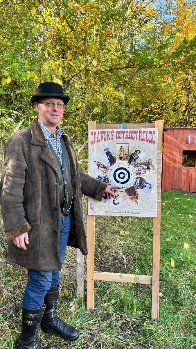 Na tomto místě chci srdečně poděkovat malíři, váženému panu Danovi Růžičkovi, se kterým jsem v kontaktu a který se zhostil úkolu – vytvořením westernového obrazu, tematicky zaměřeného pro náš závod. Tento byl použit nejen jako cena pro nejlepšího střelce hlavního závodu, ale posloužil i jako výchozí podklad pro plakát Opavského ostrostřelce pro rok 2025.